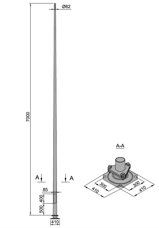Słup oświetleniowy CC 7000/62/139/4 Slip Base 103525 103525 103525