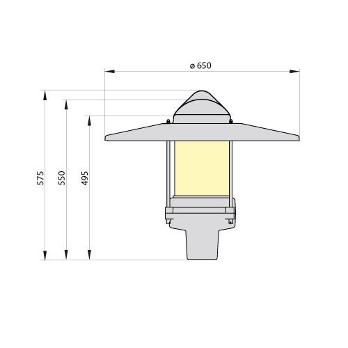 odbłyśnik tzw. „kapelusz” o średnicy ø 650mm z ozdobnym elementem malowanym proszkowo, wersja standardowa: walec, kolor grafit (czarny) RAL 9005