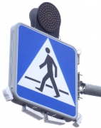 - czujniki ruchu – zastosowanie czujników sprawia że znak przy braku pieszego jest lekko podświetlony, ale podczas wykrycia ruchu następuje pełne rozświetlenie znaku i podświetlenia przejścia, pulsator mruga 24h/dobę. Takie rozwiązanie sprawia że kierowca dostaje wyraźny komunikat o pieszym, a dodatkowo znacząco zmniejsza się pobór prądu zwiększając autonomie;