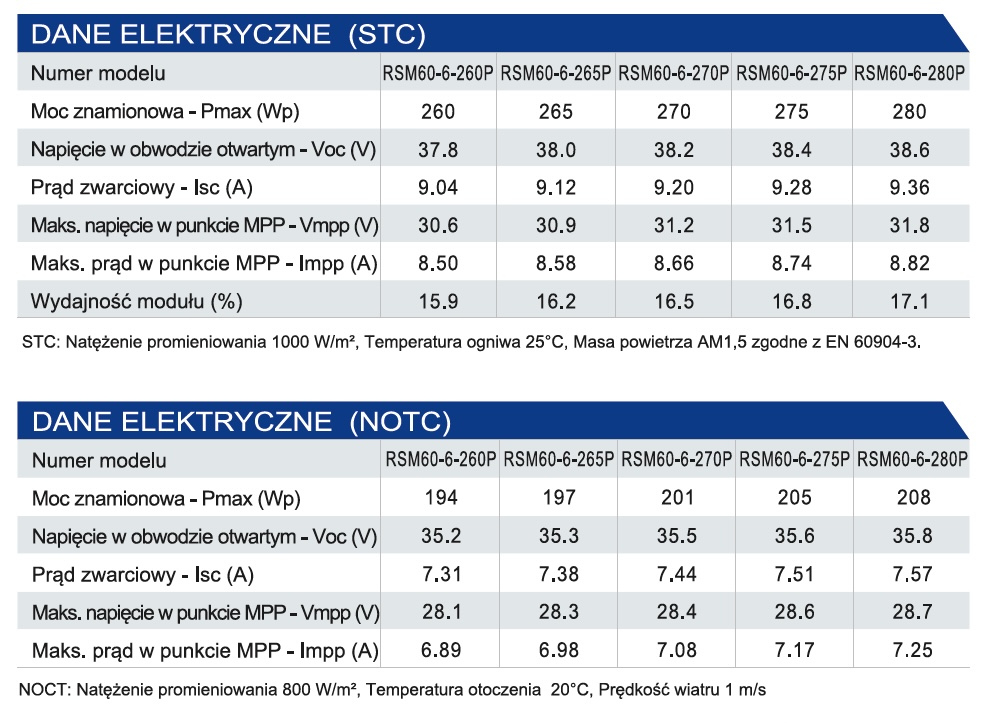 Panel fotowoltaiczny polikrystaliczny Risen RSM60-6 260-280W 5BB