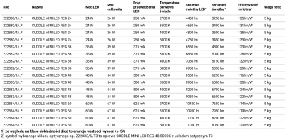 | Prąd rozruchowy | 18 A / 280 µs (CUDDLE MINI LED 24 - 36) 98 A / 120 µs (CUDDLE MINI LED 48 - 60) |
