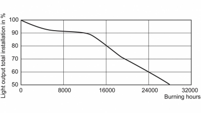- Cyrkonowo-aluminiowy pochłaniacz gazów zapewnia optymalne utrzymanie wartości strumienia świetlnego i niską zawodność