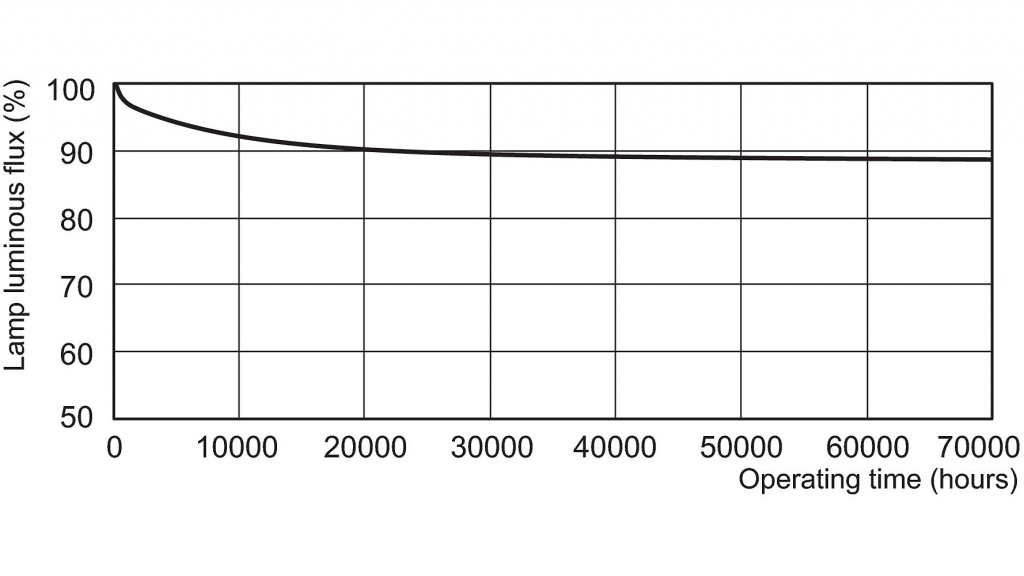 - Oszczędność energii (do 70%) dzięki wyższej skuteczności świetlnej w niskich temperaturach otoczenia