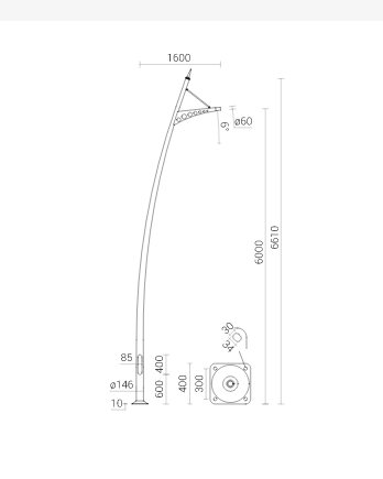Każdy aluminiowy słup oświetleniowy posiada wnękę na złącze słupowe. Pokrywa wnęki jest wycinana laserem.