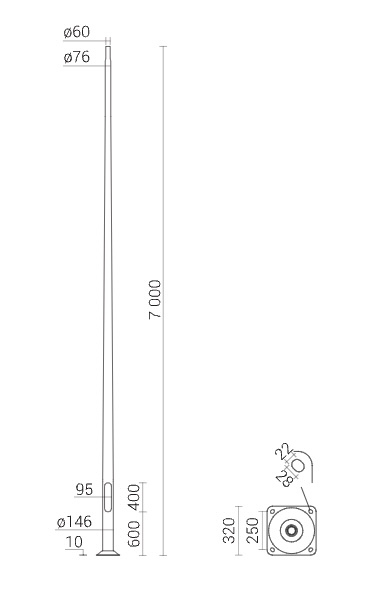 Stożki słupów są walcowane z rur ze stopu aluminium EN AW-6060. Ich podstawy tłoczy się z blach stopu aluminium EN AW-5754.