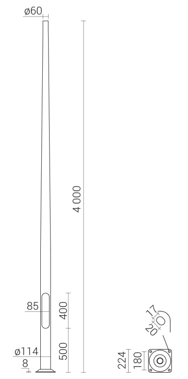 Stożki słupów są walcowane z rur ze stopu aluminium EN AW-6060. Ich podstawy tłoczy się z blach stopu aluminium EN AW-5754.