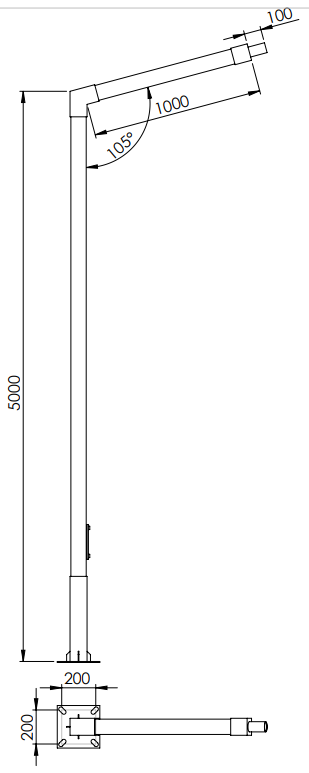 4) Słup oświetleniowy + fundament ● najczęściej wykonany ze stali ocynkowanej osadzony na fundamencie ● fundament wchodzi w skład zestawu w przypadku zestawów ze słupem ● słup do lamp solarnych wyposażony jest w spcjalne wsporniki umożliwiające montaż paneli ● słup oświetleniowy musi wytrzymywać całkowitą masę systemu oświetlenia |  |