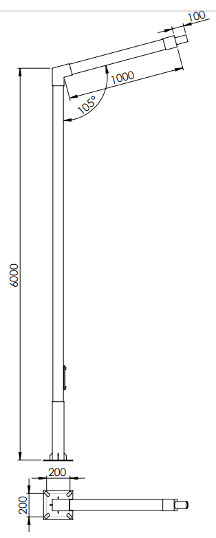 4) Słup oświetleniowy + fundament ● najczęściej wykonany ze stali ocynkowanej osadzony na fundamencie ● fundament wchodzi w skład zestawu w przypadku zestawów ze słupem ● słup do lamp solarnych wyposażony jest w spcjalne wsporniki umożliwiające montaż paneli ● słup oświetleniowy musi wytrzymywać całkowitą masę systemu oświetlenia |  |