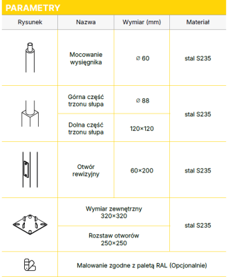 Słup stalowy KO 7m, fi 60mm 108620 108620 108620